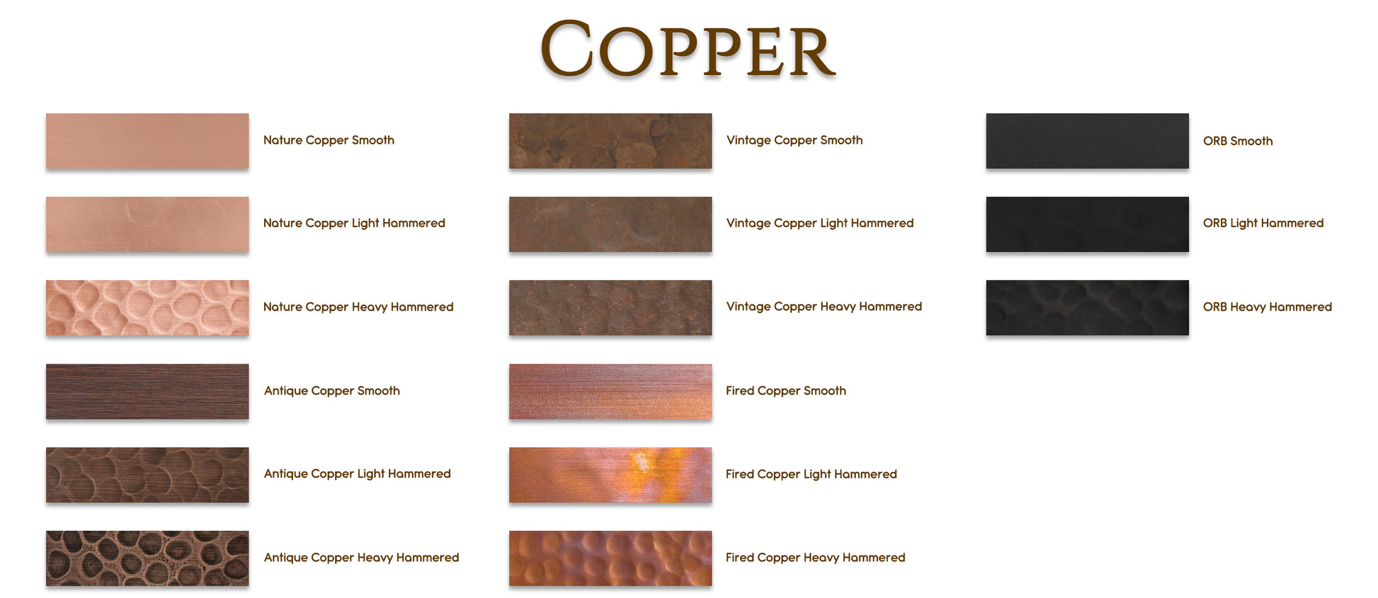 - To match the specifications shown in the website photos, select Nature Copper Smooth (click to get a sample) with a Side-Mounted installation.